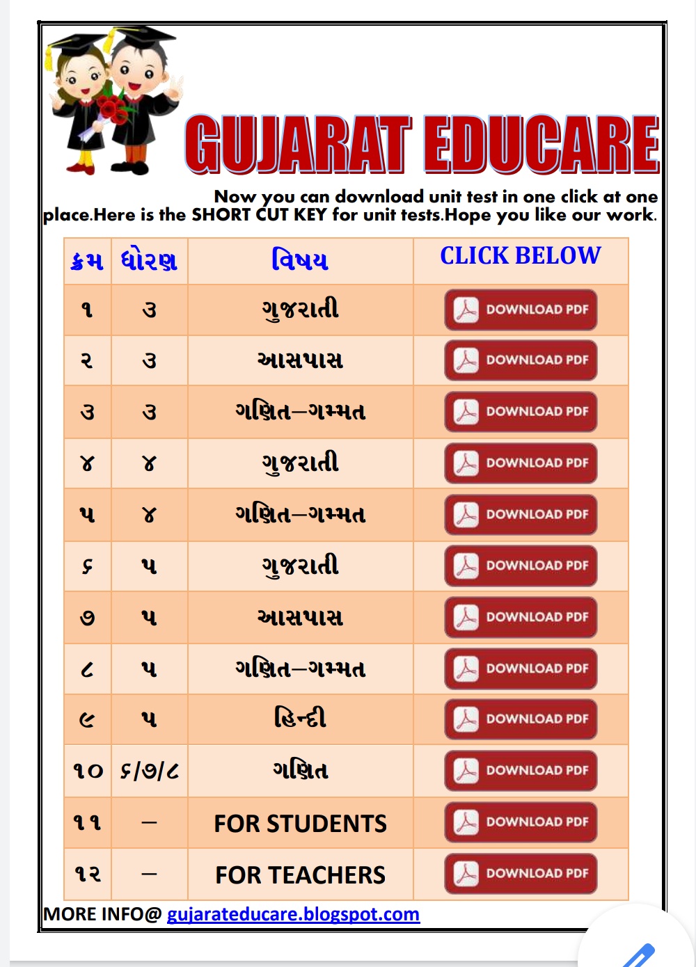 Std 3 To 8 Unit Test Papers All In One Pdf Gujarat Educare