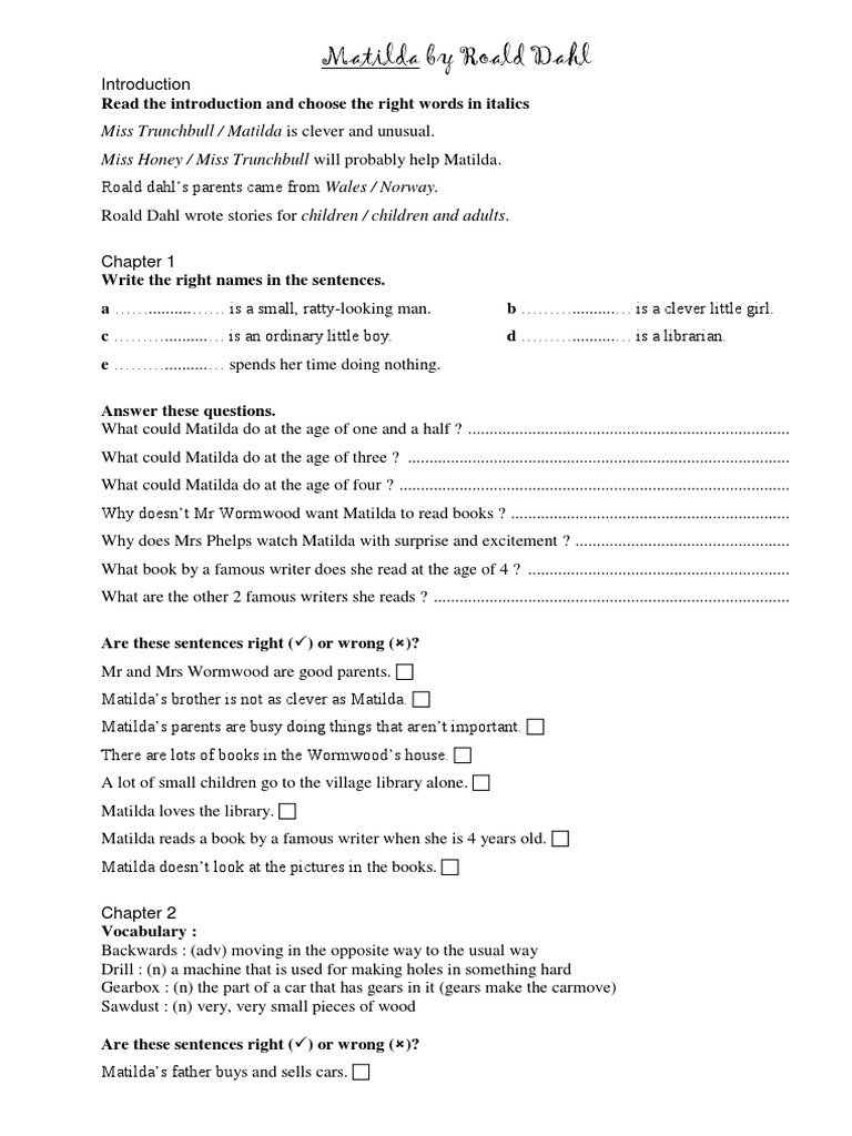 English Esl Matilda Worksheets Most Downloaded 7 Results