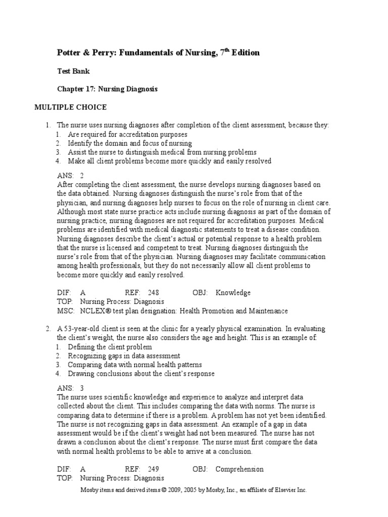Test Bank For Fundamentals Of Nursing Bank For Fundamentals Of