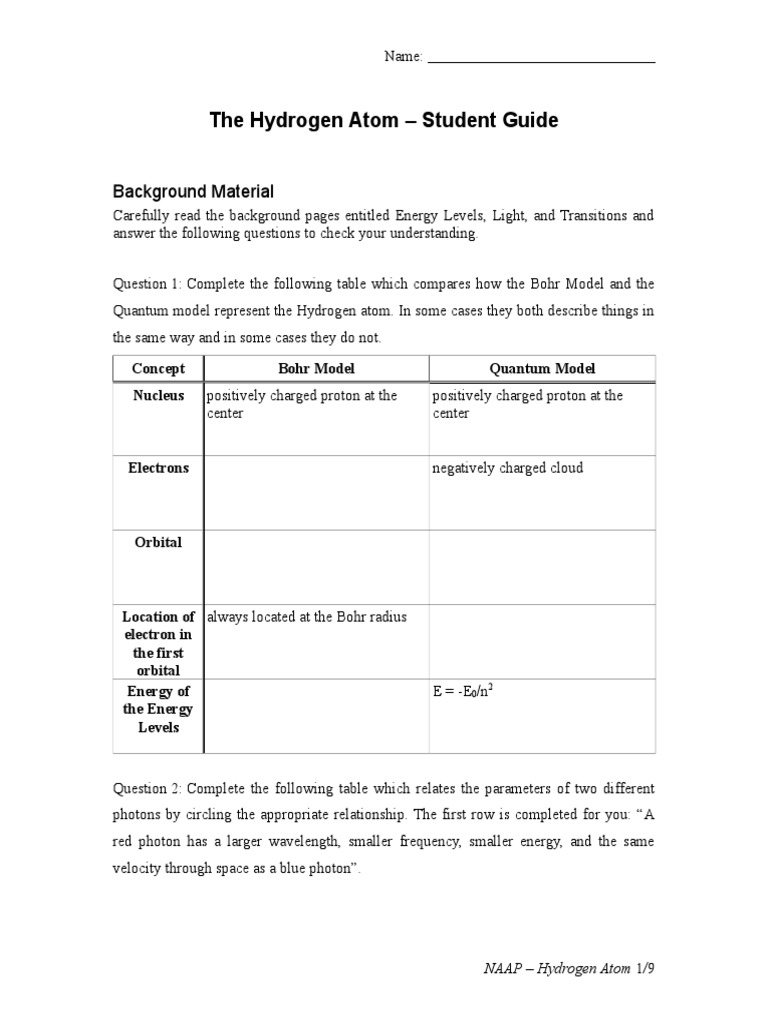 Lab 3 Naap Hydrogen Studentguide Name Alys Gomez The Hydrogen Atom Student Guide Background Material Carefully Read The Background Pages Entitled Course Hero