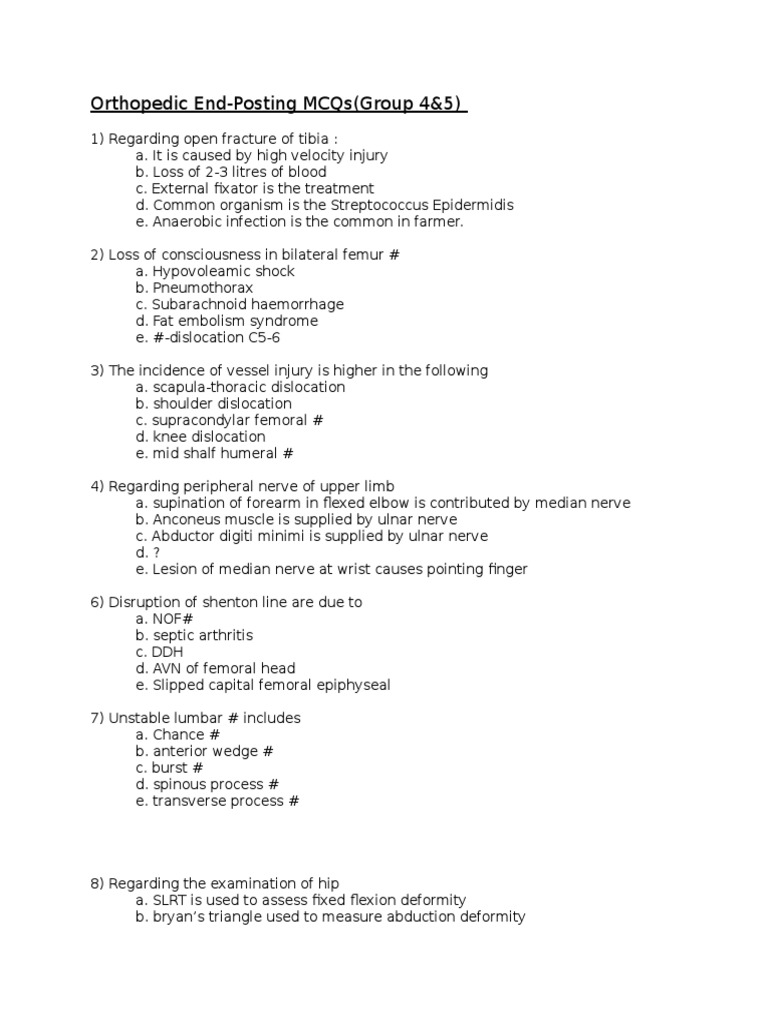 A Question Bank Of Multiple Choice Questions In Orthopaedics And Traumatology