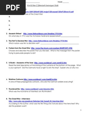 World War I Pbs Webquest Part I Pages 1 4 Text Version