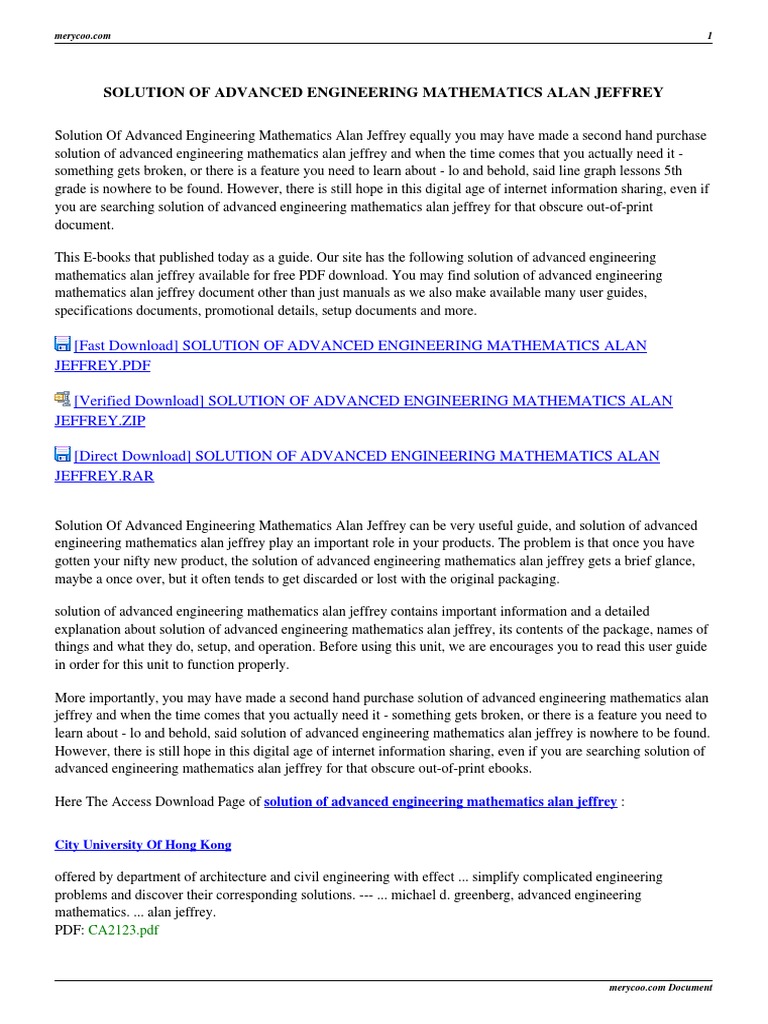 Advanced Modern Engineering Mathematics Fourth Edition Docsity