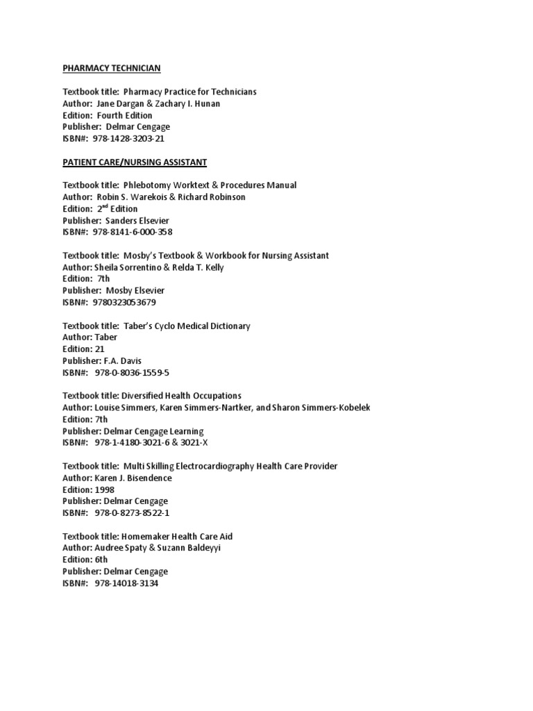 Pharmacy Technician Book Online Isbn