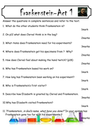 Frankenstein Adapted Worksheets Teaching Resources Tpt