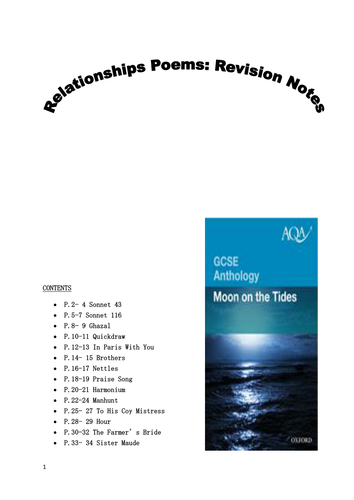 Aqa Gcse English Literature Moon On The Tides Revision Booklet