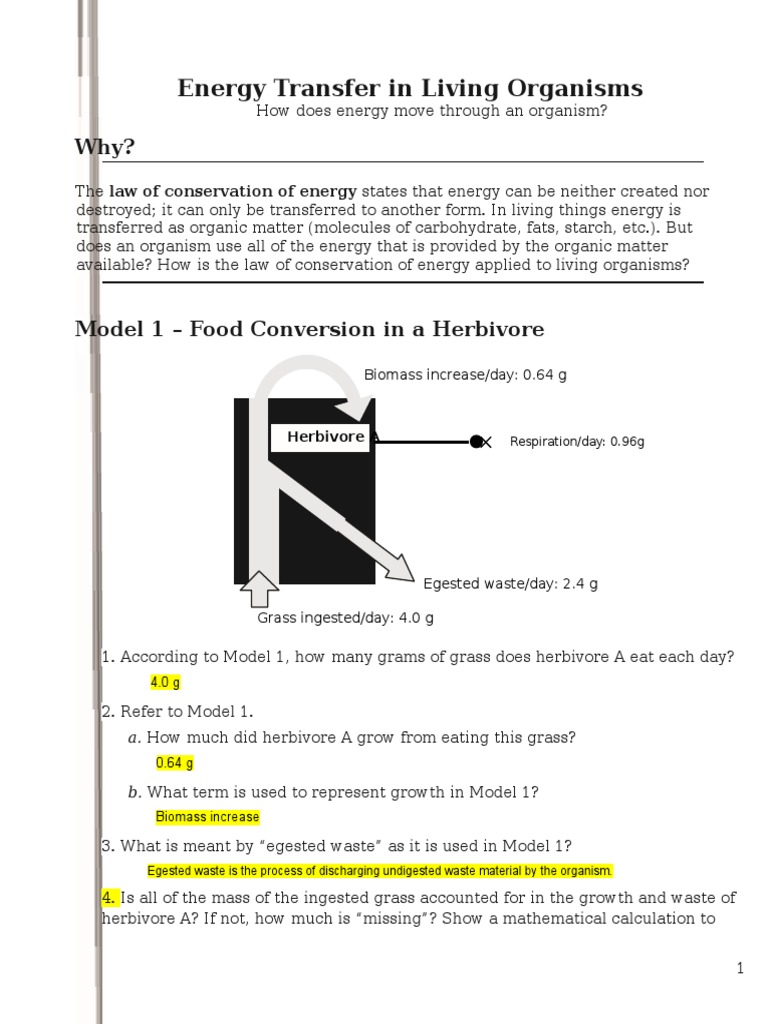 4 4 4 6 Worksheet Cellular Respiration How Is Energy Transferred