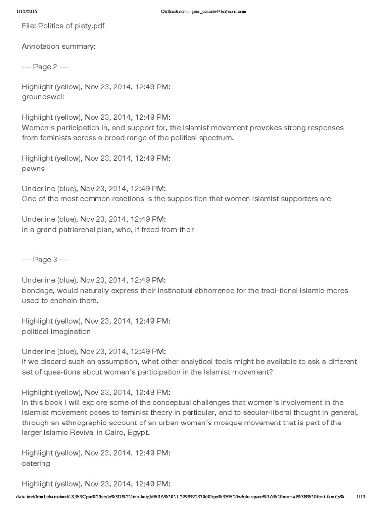 Politics Of Piety The Islamic Revival And The Feminist Subject