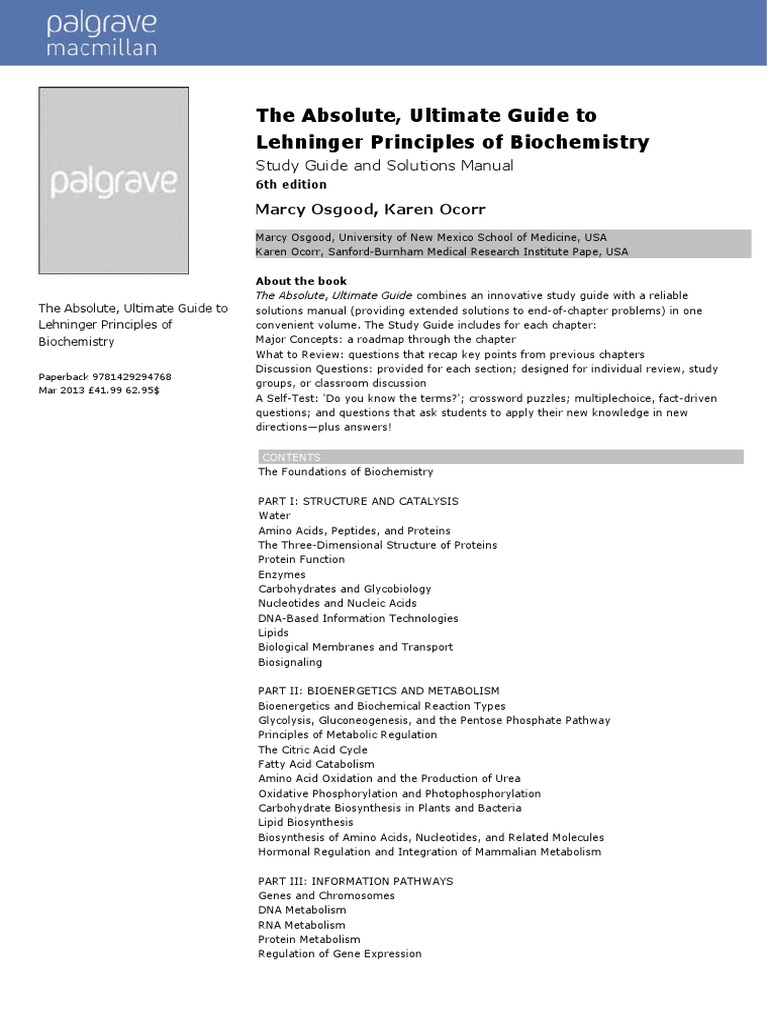 Solutions Manual For Lehninger Principles Of Biochemistry 6th Edition