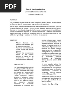 Resumen Tipos De Reacciones Quimicas Reacciones Quimicas Ph