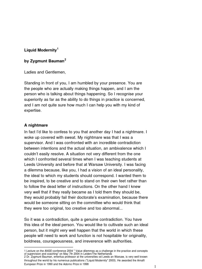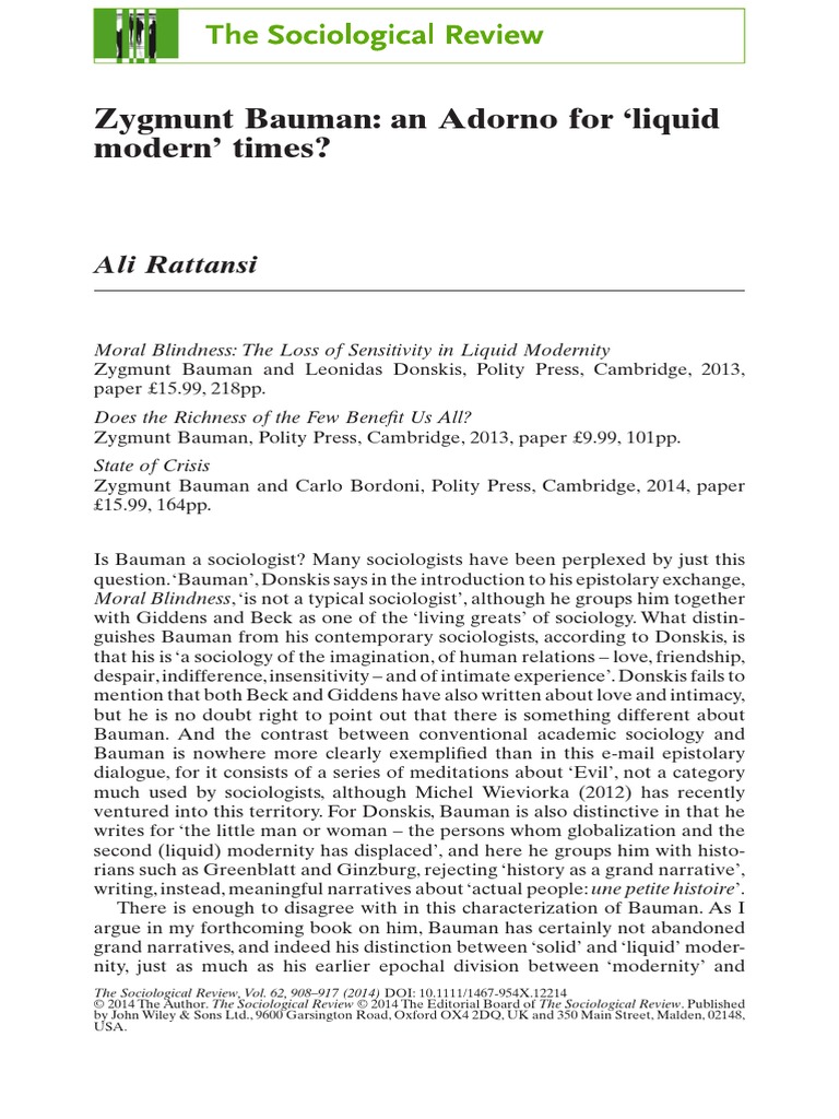 Pdf Zygmunt Bauman On Mobility