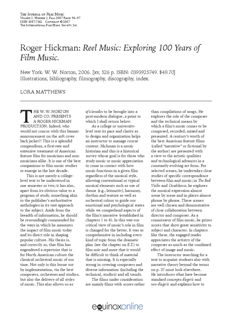 Roger Hickman Reel Music Exploring 100 Years Of Film Music