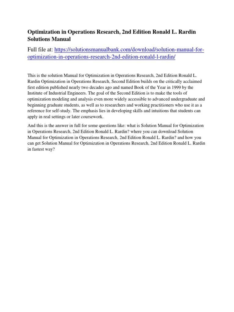 Optimization In Operations Research Ronald Rardin Solutions