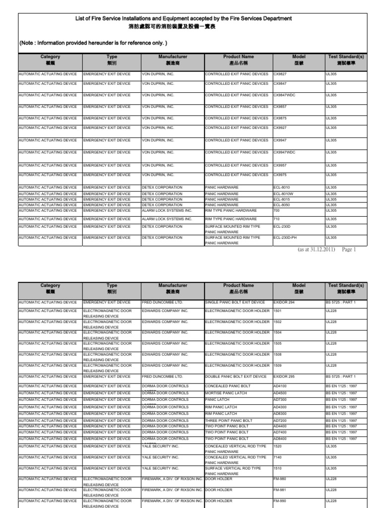 List Of Fire Service Installations And Equipment Clean Agent
