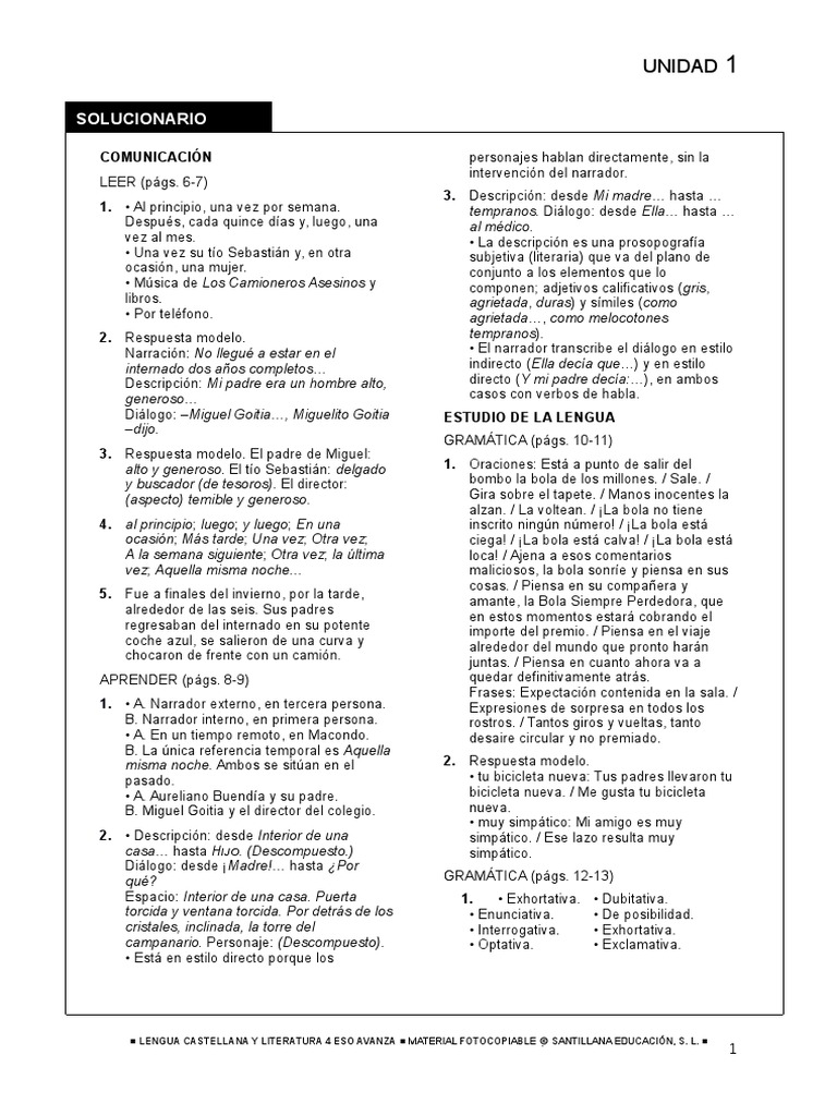 Examen Lengua Y Literatura 1 Eso Santillana Soluciones