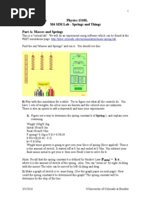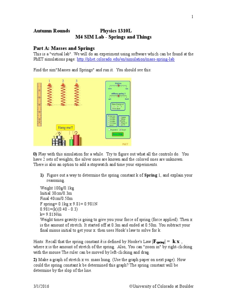 Physics Hooke S Law Phet Simulation Lab Part I Physics Hooke S