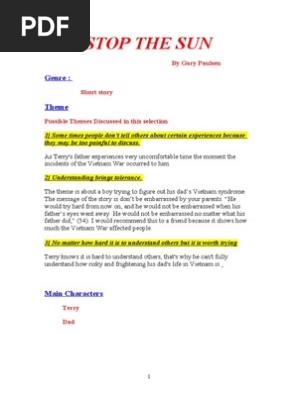 Stop The Sun By Gary Paulsen Study Unit By Arlene Manemann Tpt