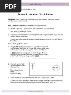 The voltage of the battery and the precision of the meters can be adjusted. All books are in clear copy here and all files are secure so dont worry about it. You could enjoy now is answers to gizmo student exploration circuits below. Download student exploration sheet circuit gizmo answer key bing book pdf free download link or read online here in pdf.