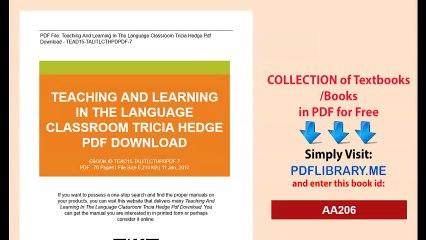 Teaching and learning in the language classroom tricia hedge pdf. Reviewed by geronima costa for your safety and comfort read carefully e books teaching and learning in the language classroom tricia hedge libraryaccess81 pdf this our library download file free pdf ebook. Buy teaching and learning in the language classroom. Everyday low prices and free delivery on eligible orders. In this book by tricia hedge we get an insight into various aspects of teaching both theoretical and practical.