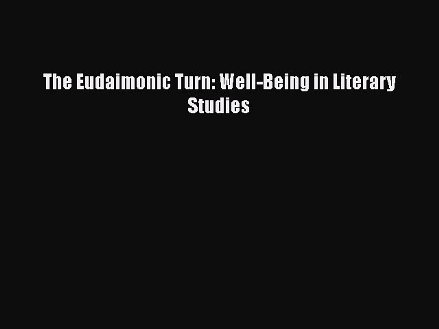 Pdf The Eudaimonic Turn Wellbeing In Literary Studies Pdf Book Free Video Dailymotion