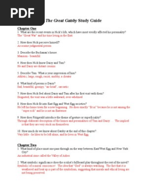 The Great Gatsby Chapter 1 Quiz And Answer Key By Aubrey Barchiesi