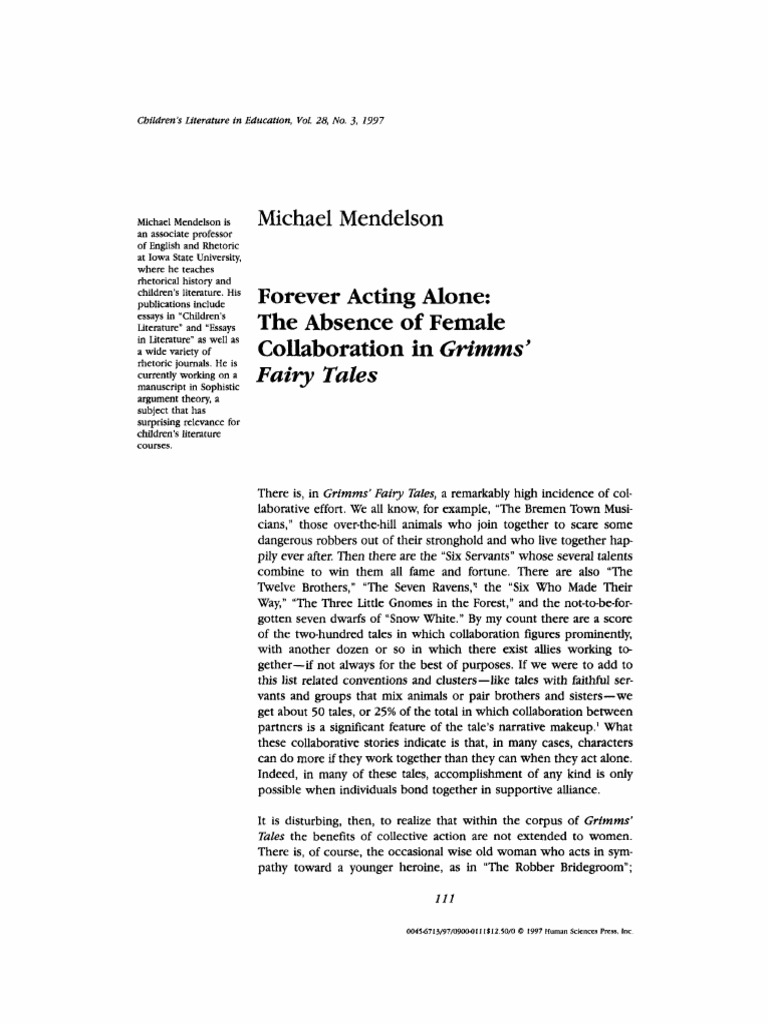 Pdf The History Of Gender Ideology In Brothers Grimm S Fairy