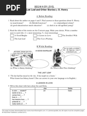 The Last Leaf By O Henry Is An Interesting Short Story