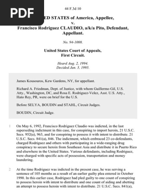 United States Of America Appellee V Francisco Rodriguez Claudio