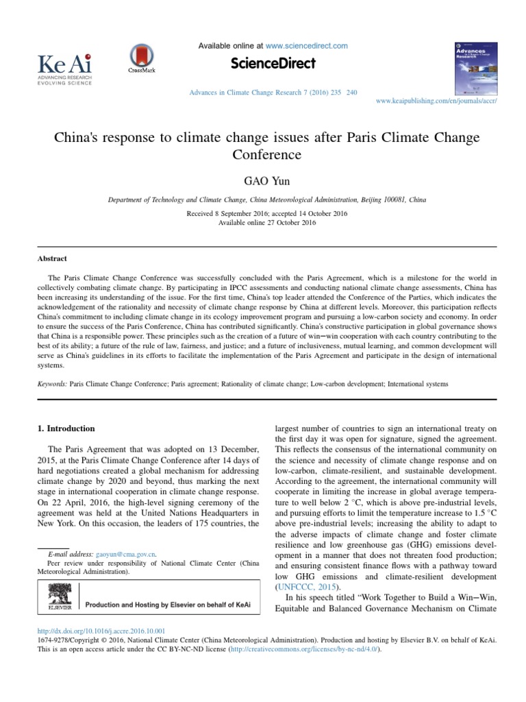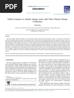 Pdf China S Response To Climate Change Issues After Paris Climate