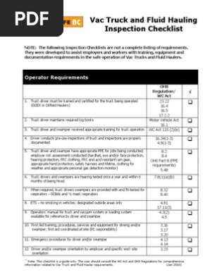 Vac Truck Insp Checklist Truck Truck Driver Free 30 Day