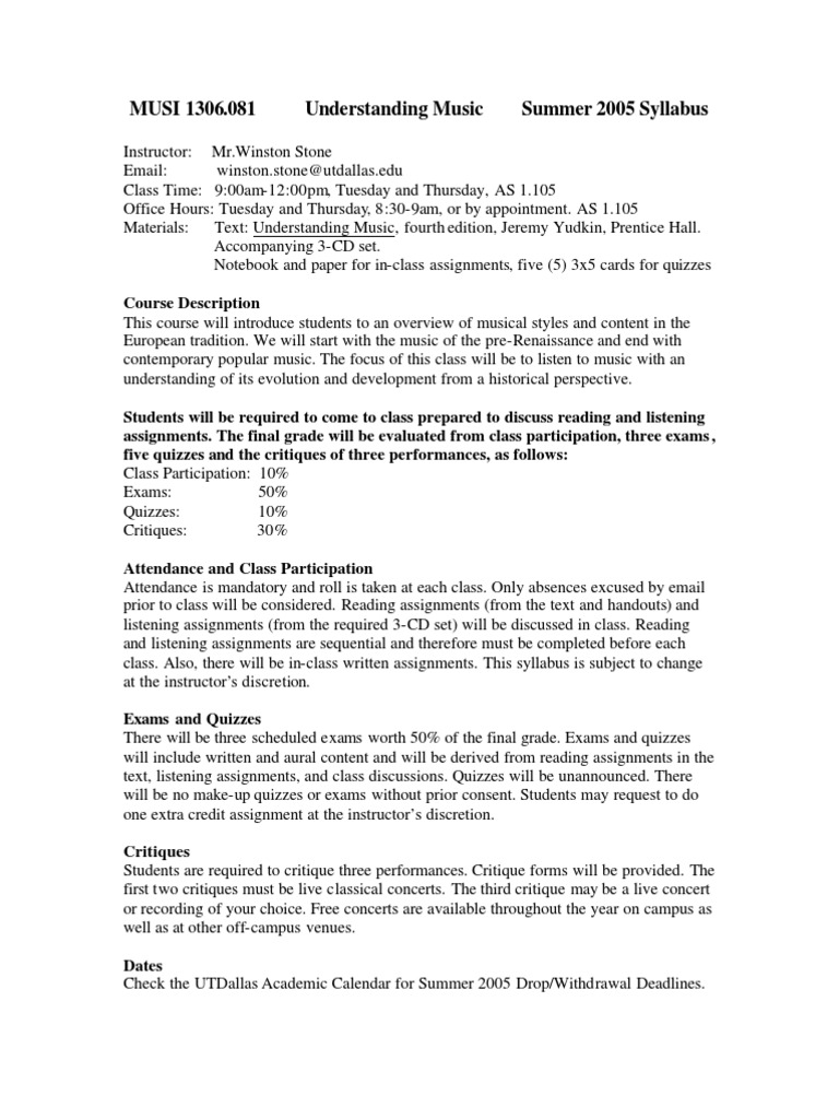 Music 100 Outline 17b Conrad Grebel University College The